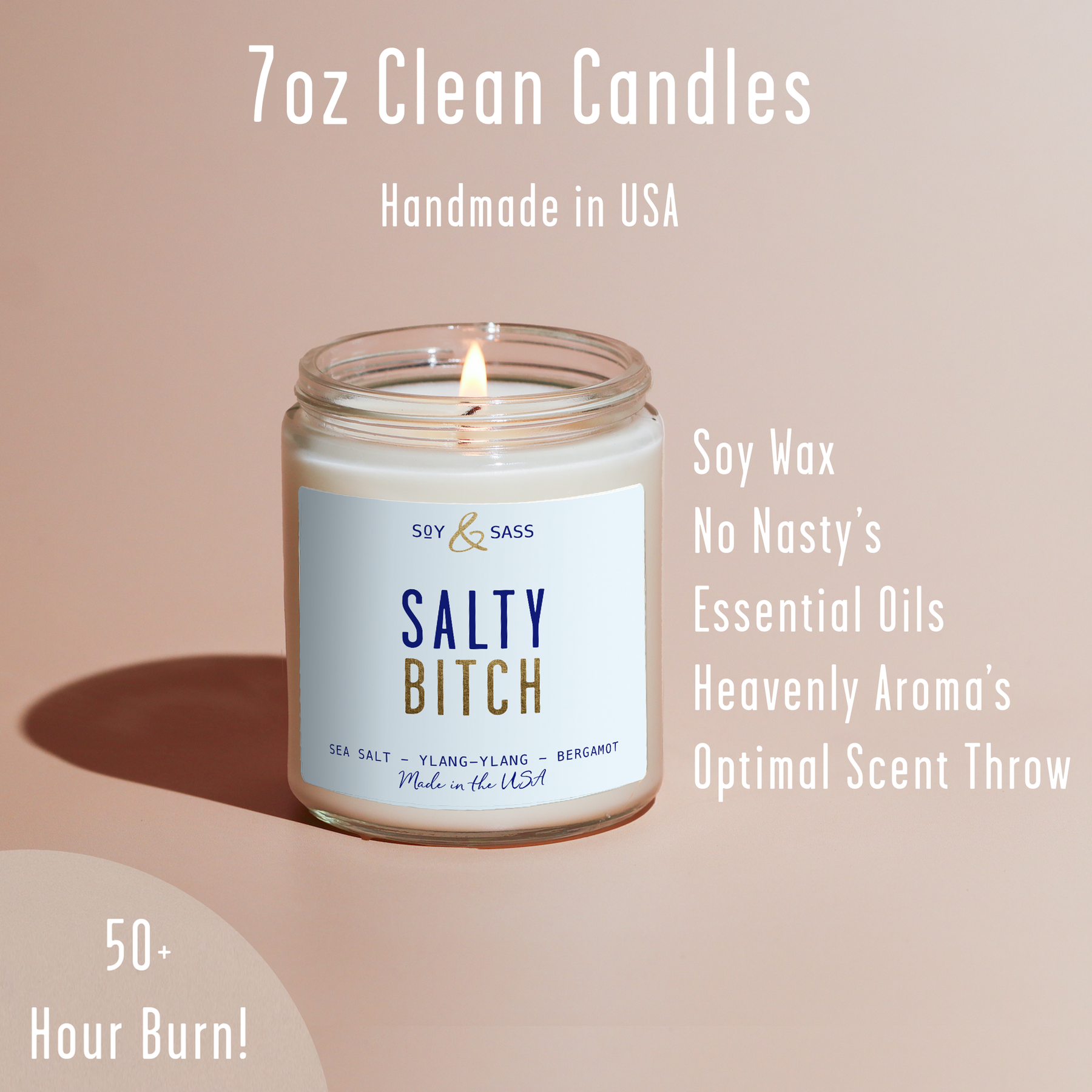Salty B*tch is a fresh, coastal scent with a confident twist. Crisp sea salt meets bright bergamot and soft floral ylang-ylang to create a clean, beachy aroma that feels uplifting, airy, and effortlessly cool.