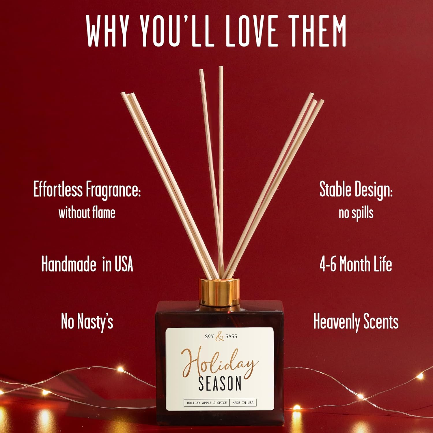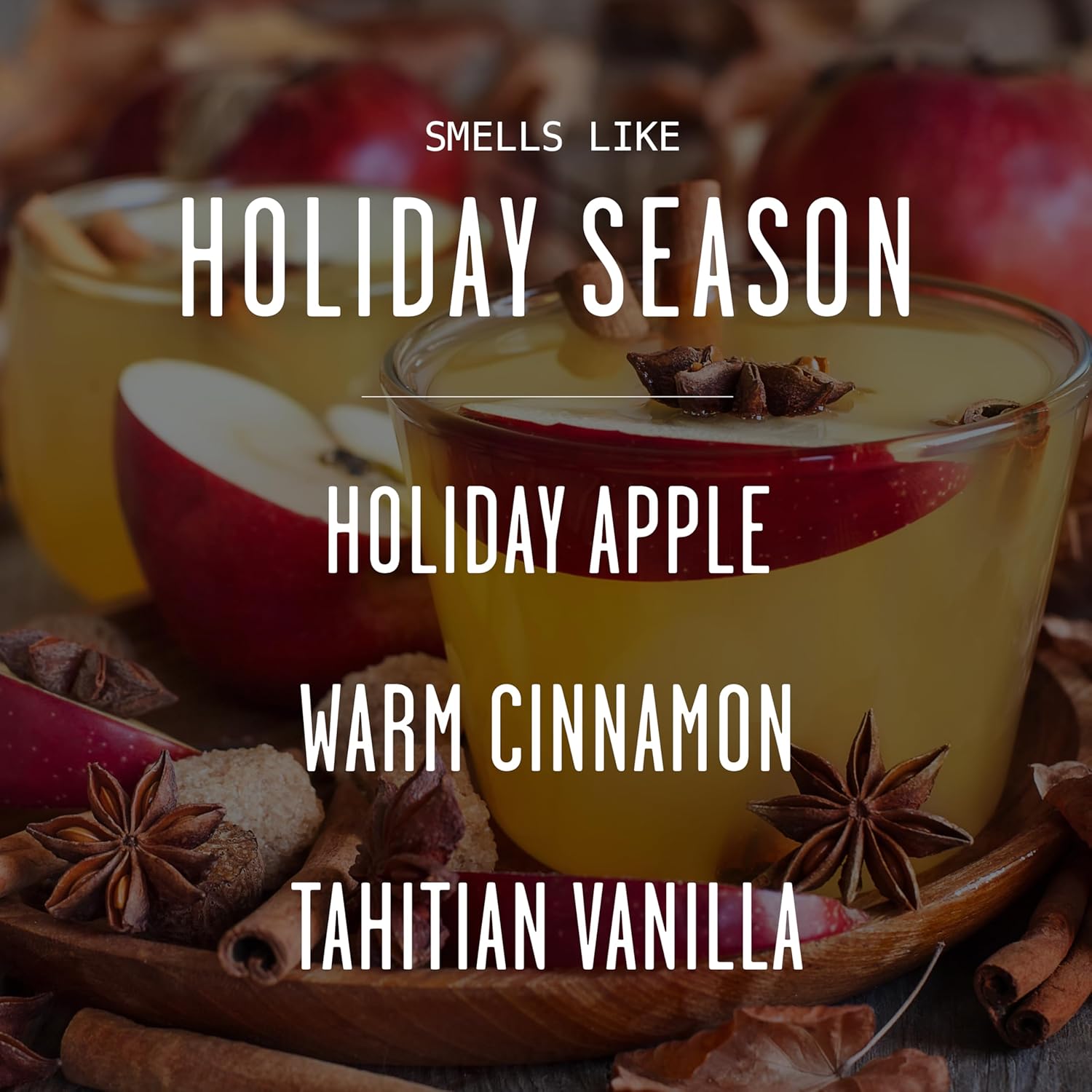 Holiday Season smells like festive warmth in a jar — juicy holiday apple on top, cozy warm cinnamon through the middle, and a smooth Tahitian vanilla base that wraps everything in a sweet, comforting holiday glow.