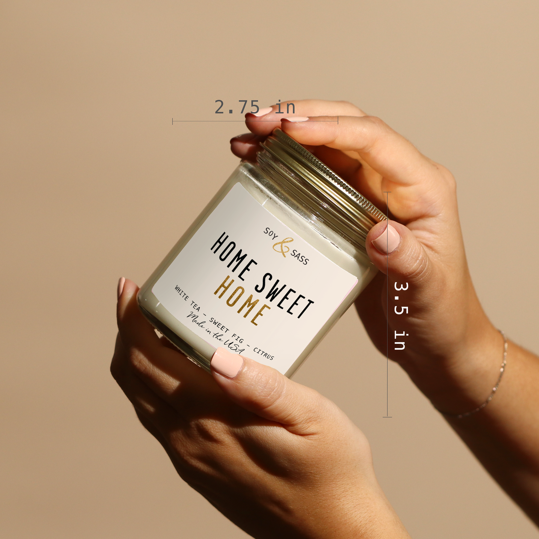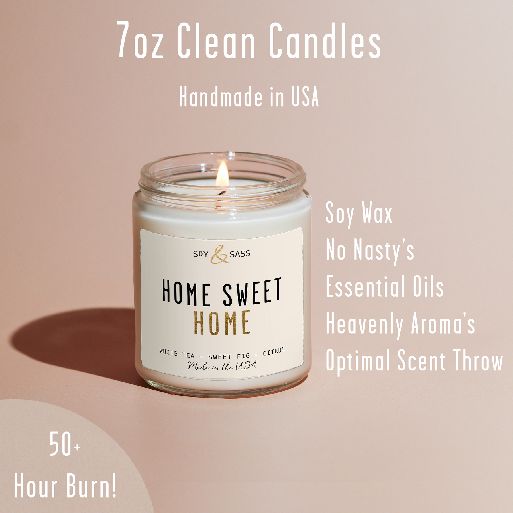 This Home Sweet Home candle makes a perfect housewarming gift, new home gift, hostess gift, birthday gift, thank you gift, realtor closing gift, apartment warming gift, and thoughtful present for anyone who has just moved. If you’re looking for a safe gift when you don’t know someone’s scent preference, a candle for new homeowners, or a cozy home fragrance that suits every décor style, this soy candle is a beautiful choice. Popular for housewarming presents, care packages, and gifts for friends, neighbors, teachers, and family.