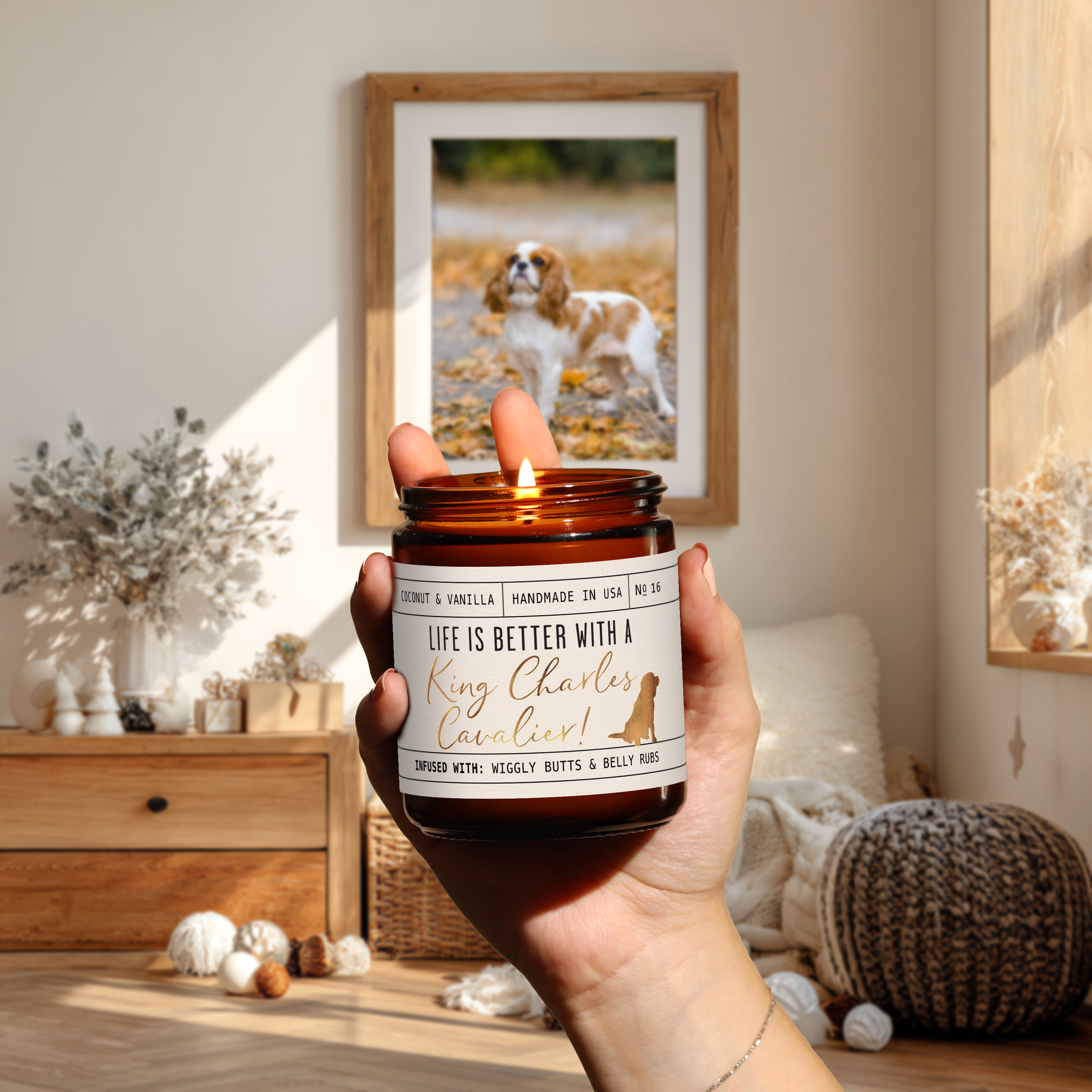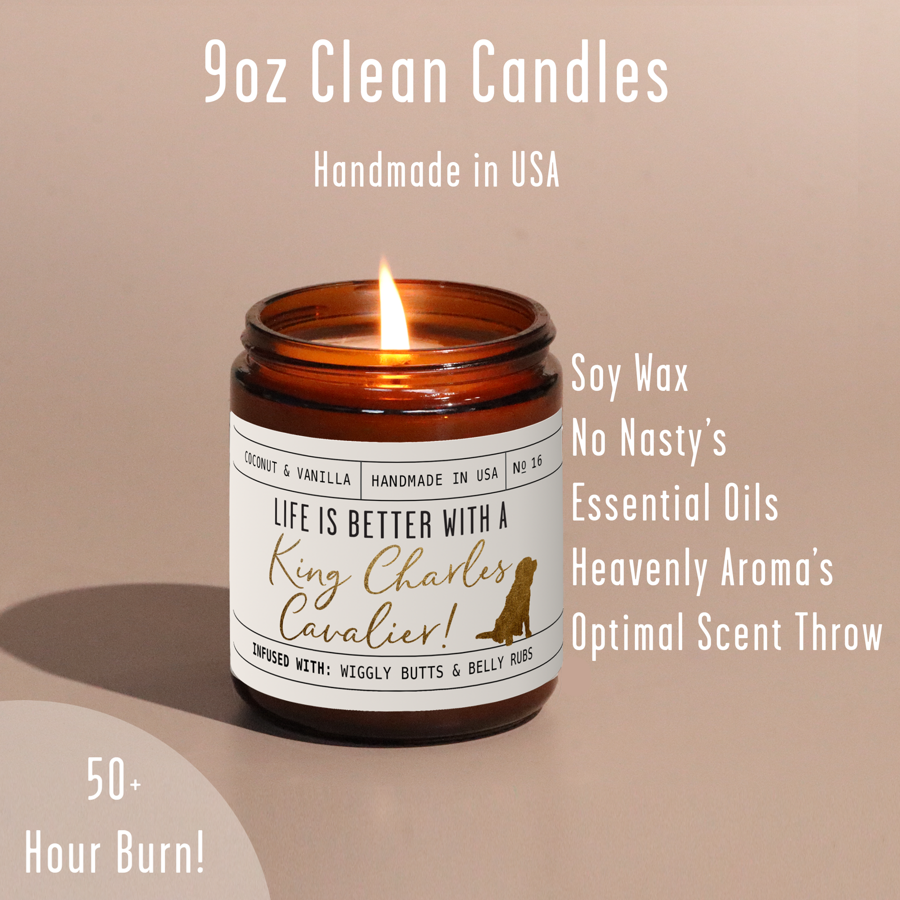 'Life is better with a Cavalier King Charles Spaniel candle! Celebrate your furry friend whilst eliminating those unwanted pet odors with our adorable Cavalier King Charles Cavalier candle.