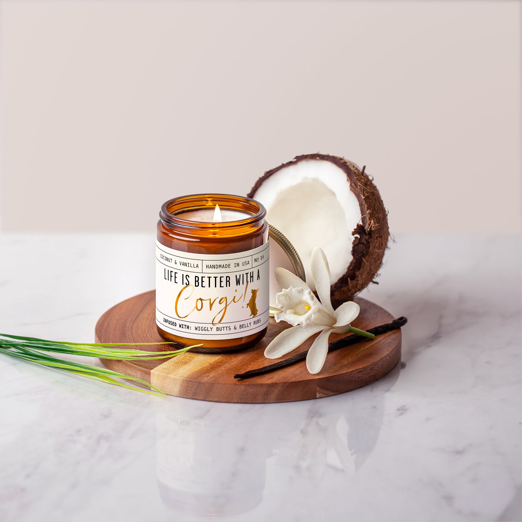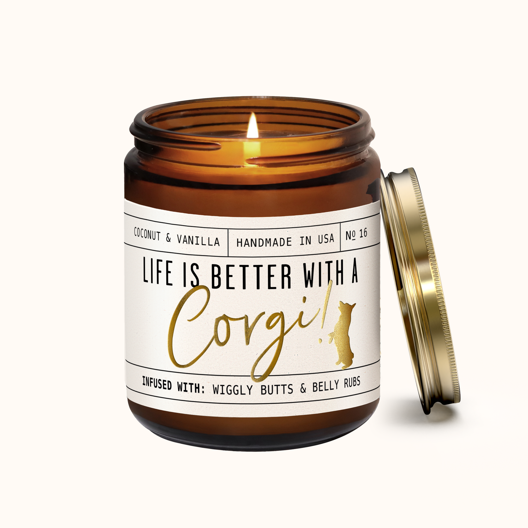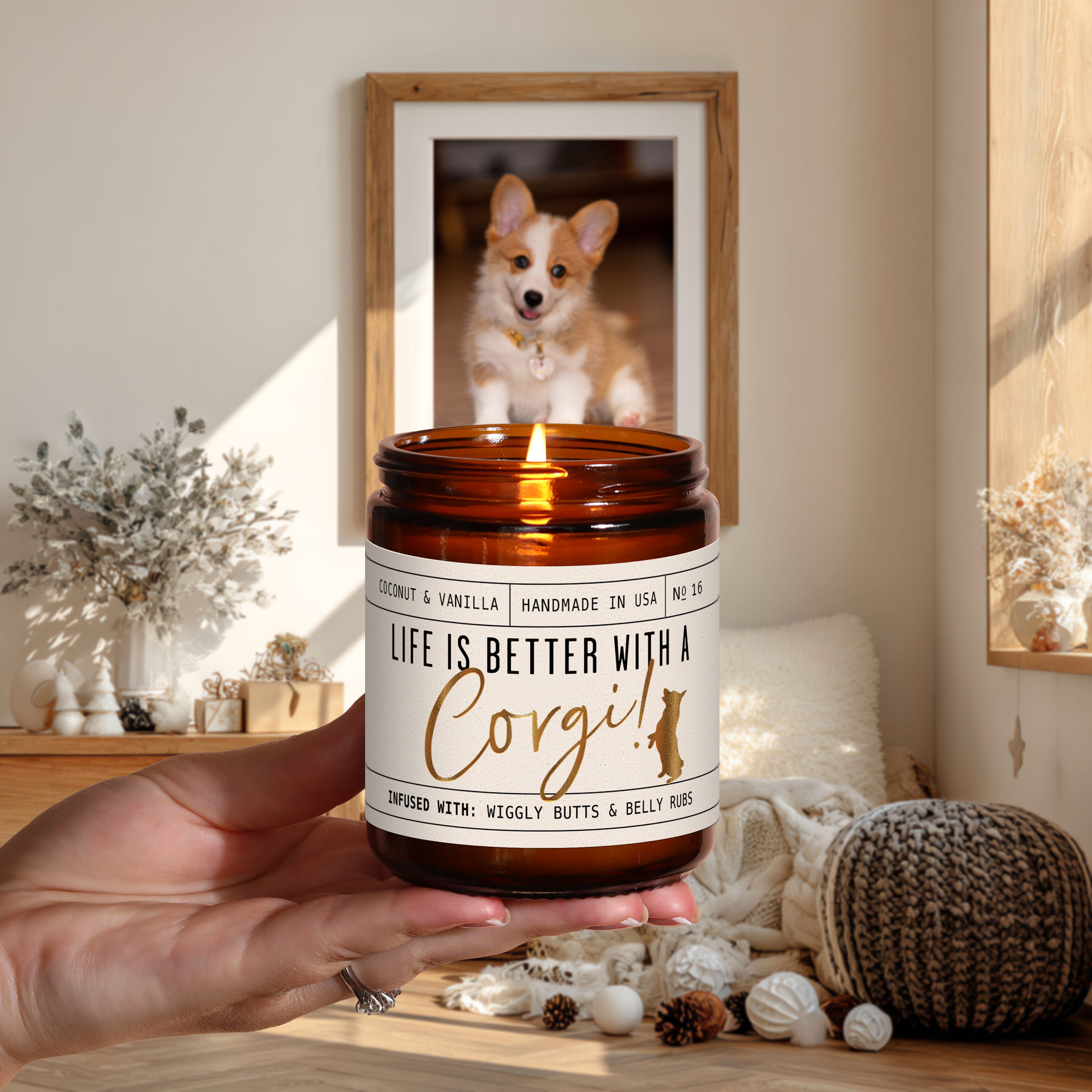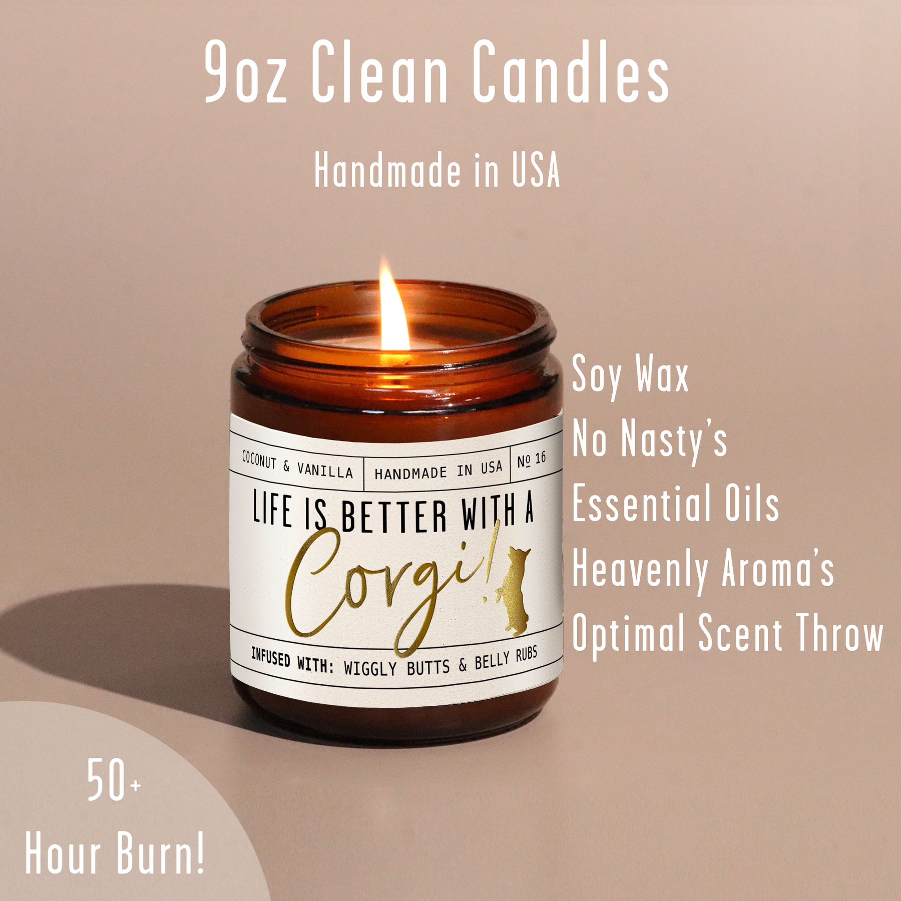 'Life is better with a Corgi' candle! Celebrate your furry friend whilst eliminating those unwanted pet odors with our adorable Corgi candle.