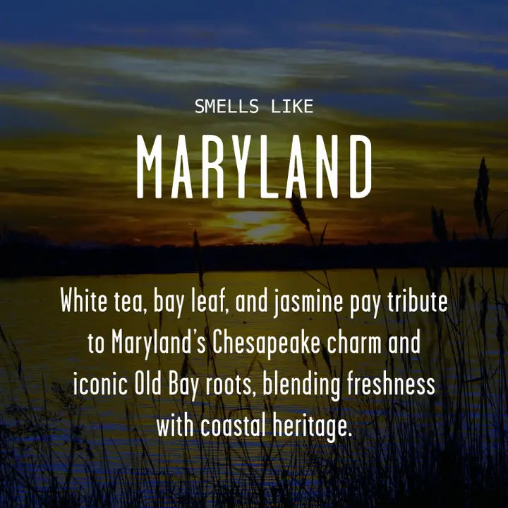 A fresh blend of ‘White Tea, Bay Leaf & Jasmine’ fuse together perfectly to represent the Chesapeake Bay of Maryland.