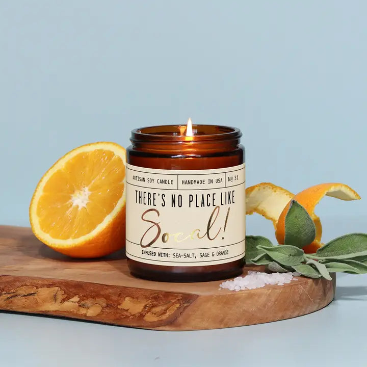 Reminiscent of the citrus groves of the OC and salty sea breeze, our ‘There’s No Place Like SoCal’ Candle will transport you to your favorite hangouts from the comfort of your own home