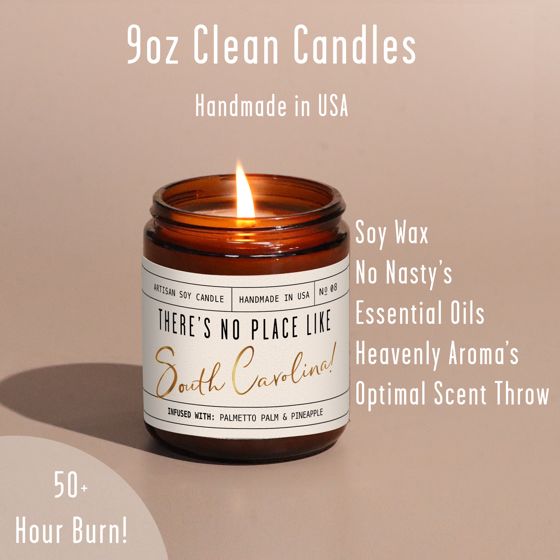 Our Amber Jar collection is visually striking: hand-poured apothecary inspired amber jars, our signature kraft label with gold foil stamping, topped with a gold lid to beautifully complete the look. Perfectly complements any room decor, and gives that "WOW" factor upon opening.